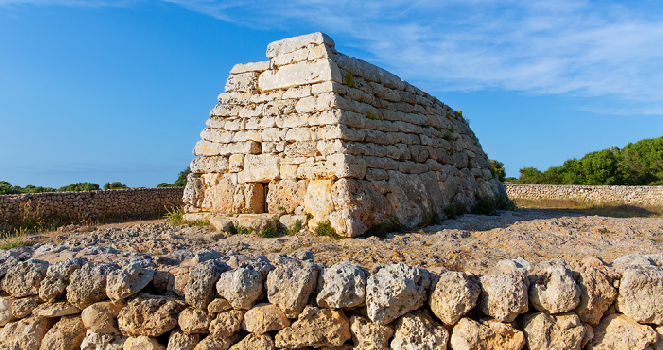 The Talayot is one of the most emblematic featuresof Menorcan archaelogy her strategic position, as much from a military point of view as commercial, has made Menorca an island coveted through the centuries by civilisations which tried in their time to dominate the Mediterranean. For this reason her history is basically a succession of invasions, the rich legascy from which can been seen to this day. It is estimated that the first settlers landed during the second millennium BC and developed the pretalayotic culture, an age from which the first architectural structures, the “navetas”, still remain. The second wave of settlers, the talayotic culture, arrived towards 1400BC and bequeathed a legacy which includes major cave systems, such as those in Son Bou, Calascoves and Cala Morell. In later ages, various races attacked the island, such as the Phoenicians, Greeks and the Carthaginians, for whom the importance of the region for their trade routes had not passed unnoticed. The Romans arrived later for one of the longest occupations, lasting from 123 BC to 902, a period which saw several attacks by the Vandals and which ended with the Moorish invasion.